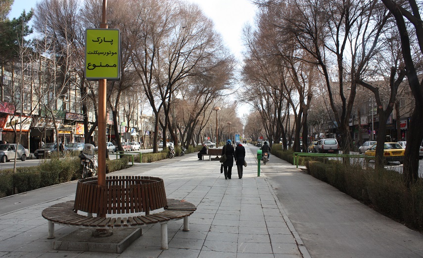 معبرمیانی چهارباغ ویژه رهگذران است، جایی برای نشستن و تماشای چهارباغ دو سوی خیابان درختان قد علم کرده اند و میانه چهارباغ باز دو ردیف از درختان با شاخه سارهایشان بر پهنای چهارباغ سقف بسته اند. خیابان را مغازههای رنگارنگ احاطه کرده و هر سه چهار خط در میان عمارتی از بناهای صفویه و یا پهلوی خودنمایی میکنند. سردر عمارت هشت بهشت، بازارچه بلند، ساختمان هتل جهان، جلوخان بی بدیل مدرسه چهارباغ و همین طور دیواری با طاق نماهای ضربی که در نورآرایی شبانه انگار مطلا شده اند از این جمله اند.