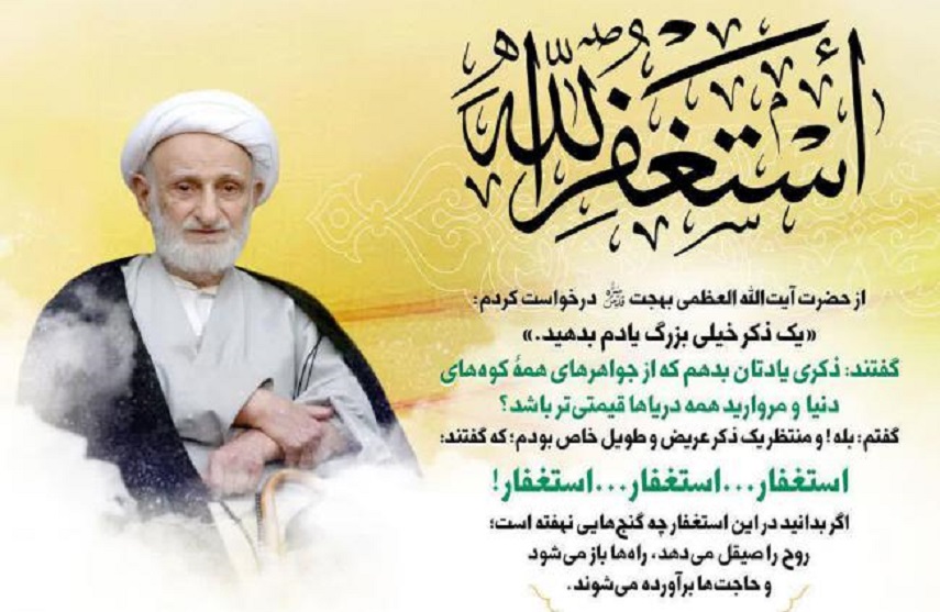 آیت الله بهجت می فرمود:«کلمه «أستغفرالله» را تا می توانید از روی اعتقاد کامل، صمیمانه، با التزام به لوازم حقیقیۀ معلومه اش، تکرار نمائید». استغفار، نباید تنها وردی زبانی باشد، بلکه باید از قلبی تائب از گناه و مشتاق به رحمت خدا سرچشمه بگیرد، وگرنه نباید انتظار گشایش و رهایی داشت.
