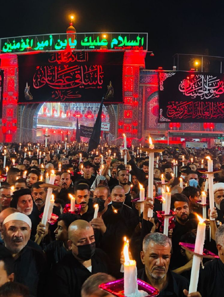 برخی از عزاداران حسینی با در دست داشتن شمع به سوی حرمهای مطهر مشرف میشدند. در ادامه تصاویری از حال و هوای کربلا در شب عاشورا را مشاهده میکنید: