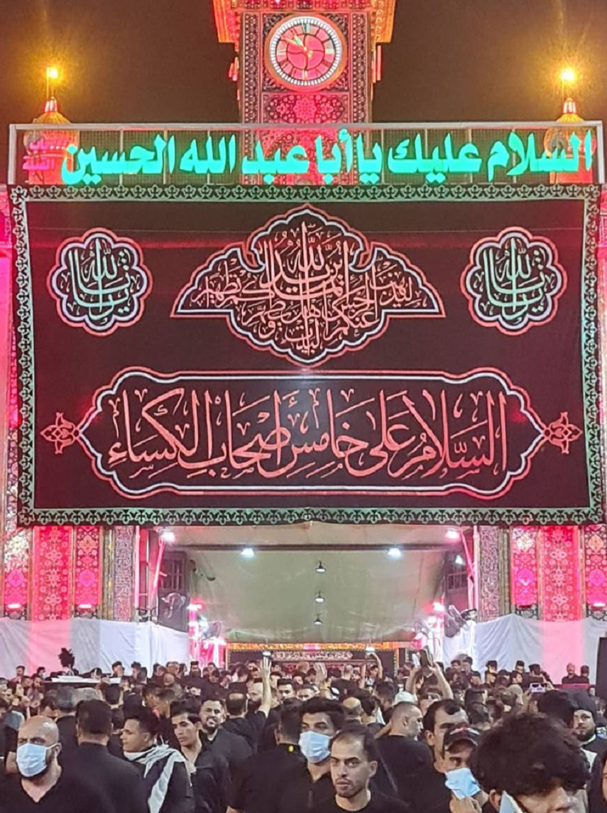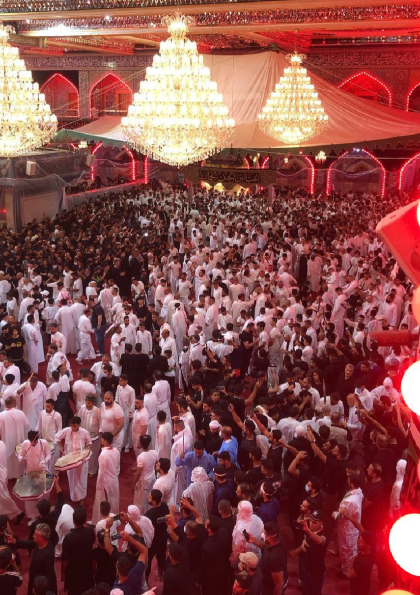 دستههای عزاداری با لباسهای قرمز، سفید و مشکی هر کدام جداگانه به سوی حرمها مشرف شده و نوای لبیک یا حسین و یا عباس مددی در کربلا سر میدادند و بر سر و سینه میکوبید.