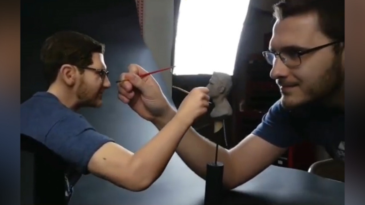مجسمه سازی که خودش را در حال خلق تندیس خودش ساخت + فیلم