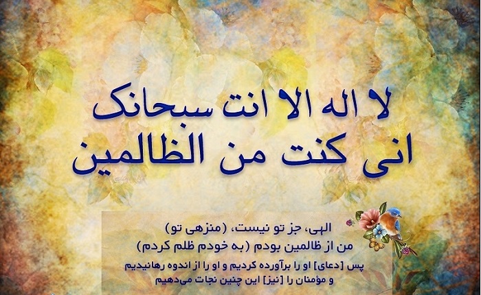 «وَ ذَاالنُّونِ إِذ ذَّهَبَ مُغَاضِبًا فَظَنَّ أَن لَّن نَّقْدِرَ عَلَيْهِ فَنَادَىٰ فِي الظُّلُمَاتِ أَن لَّا إِلَـٰهَ إِلَّا أَنتَ سُبْحَانَكَ إِنِّي كُنتُ مِنَ الظَّالِمِينَ﴿٨٧﴾ فَاسْتَجَبْنَا لَهُ وَنَجَّيْنَاهُ مِنَ الْغَمِّ ۚ وَكَذَٰلِكَ نُنجِي الْمُؤْمِنِينَ﴿٨٨﴾ »