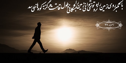 «وَلَا تَمْشِ فِي الْأَرْضِ مَرَحًا ۖ إِنَّكَ لَن تَخْرِقَ الْأَرْضَ وَلَن تَبْلُغَ الْجِبَالَ طُولًا﴿۳۷﴾»