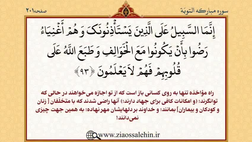 سَیَحْلِفُونَ بِاللّهِ لَکُمْ إِذَا انْقَلَبْتُمْ إِلَیْهِمْ لِتُعْرِضُوا عَنْهُمْ فَأَعْرِضُوا عَنْهُمْ إِنَّهُمْ رِجْسٌ وَ مَأْواهُمْ جَهَنَّمُ جَزاءً بِما کانُوا یَکْسِبُونَ«۹۵»