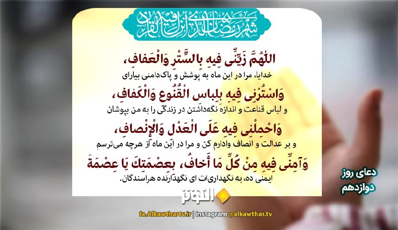 دعای روز دوازدهم ماه مبارک رمضان + متن و ترجمه تصویری