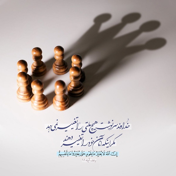 ترجمه: در حقيقت، خدا حال قومى را تغيير نمىدهد تا آنان حال خود را تغيير دهند.