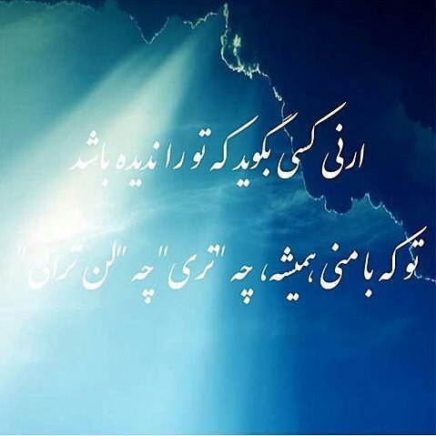 مولوی: به فلک برآ چو عیسی ارنی بگو چو موسی /که خدا تو را نگوید که خموش لن ترانی مولوی:اعتمادی دارد او بر عشق دوست/گر سماع لن ترانی میکند
