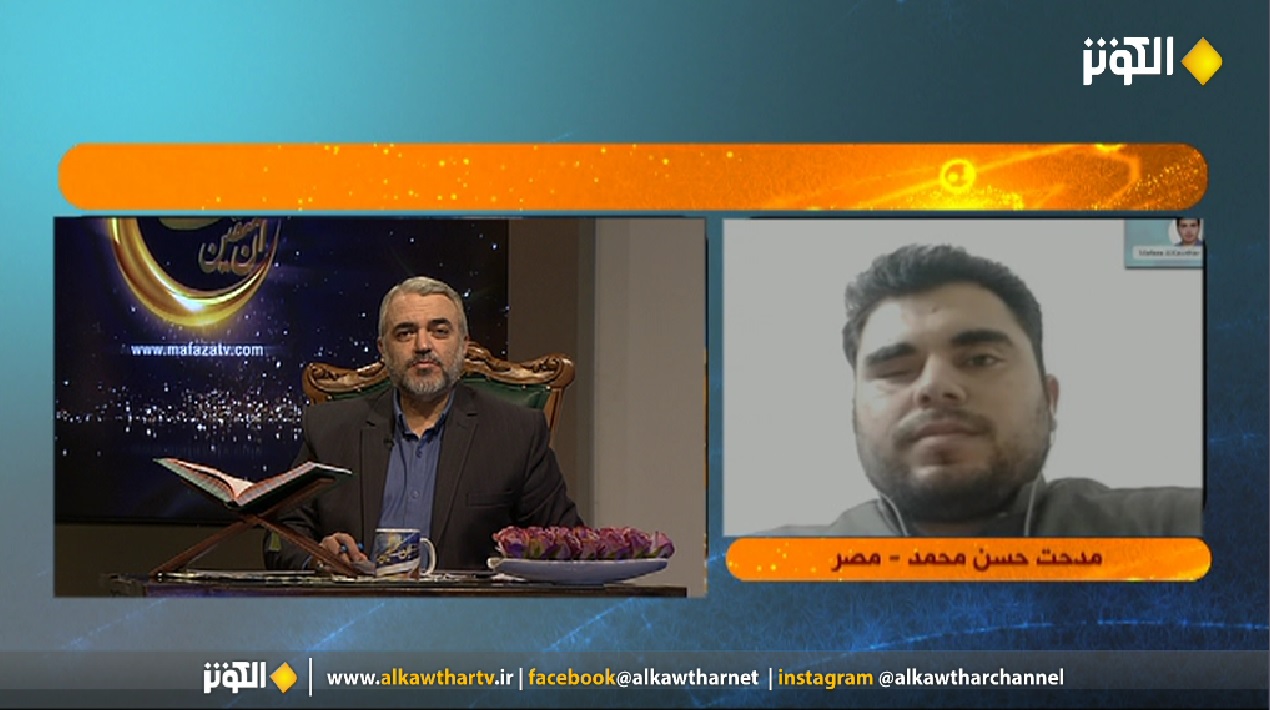 تهران - ویژه الکوثر : «مدحت حسن محمد» قاری شرکت کننده از مصر در بیست و دومین شب از پانزدهمین دوره مسابقات قرآنی رمضانی «ان للمتقین مفازا» که شبکه الکوثر برگزار می کند، آیاتی از سوره کهف را تلاوت کرد.