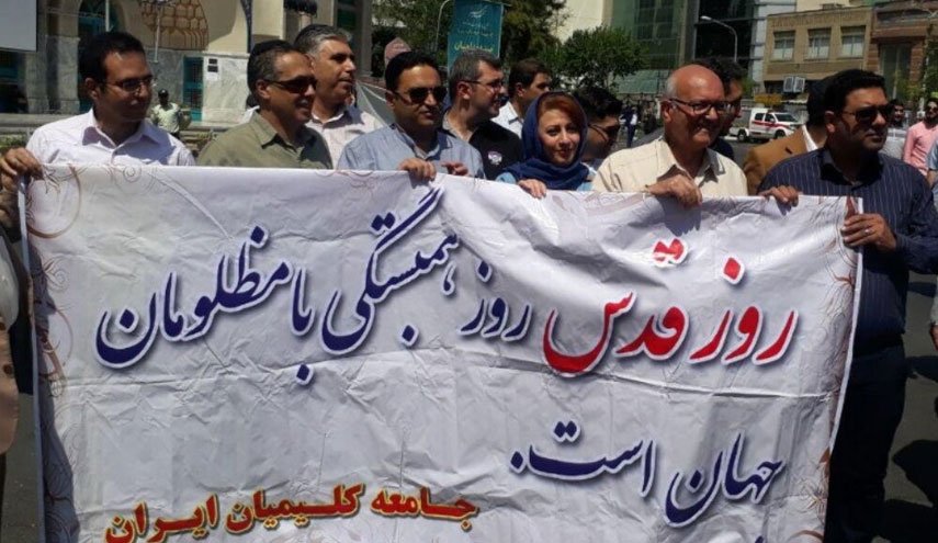 تهران - الکوثر : در آخرین جمعه ماه مبارک رمضان و روز جهانی قدس که روز حمایت از مردم مظلوم و آزادی خواه فلسطین نامگذاری شده است، یهودیان ایران نیز با حضور پرشور خود نفرت و انزجار خود را از رژیم غاصب رژیم صهیونیستی اعلام کردند.
