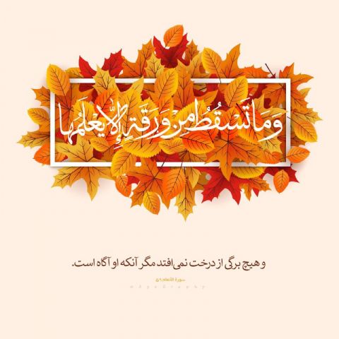 (و كليدهاى غيب، تنها نزد اوست. جز او [كسى] آن را نمىداند و آنچه در خشكى و درياست مىداند، و هيچ برگى فرو نمىافتد مگر [اينكه] آن را مىداند، و هيچ دانهاى در تاريكیهاى زمين، و هيچ تر و خشكى نيست مگر اينكه در كتابى روشن [ثبت ]است.)