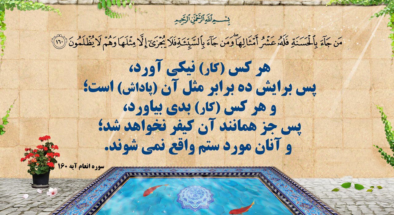 «مَن جَاءَ بِالْحَسَنَةِ فَلَهُ عَشْرُ أَمْثَالِهَا ۖ وَمَن جَاءَ بِالسَّيِّئَةِ فَلَا يُجْزَىٰ إِلَّا مِثْلَهَا وَهُمْ لَا يُظْلَمُونَ ﴿١٦٠﴾»
