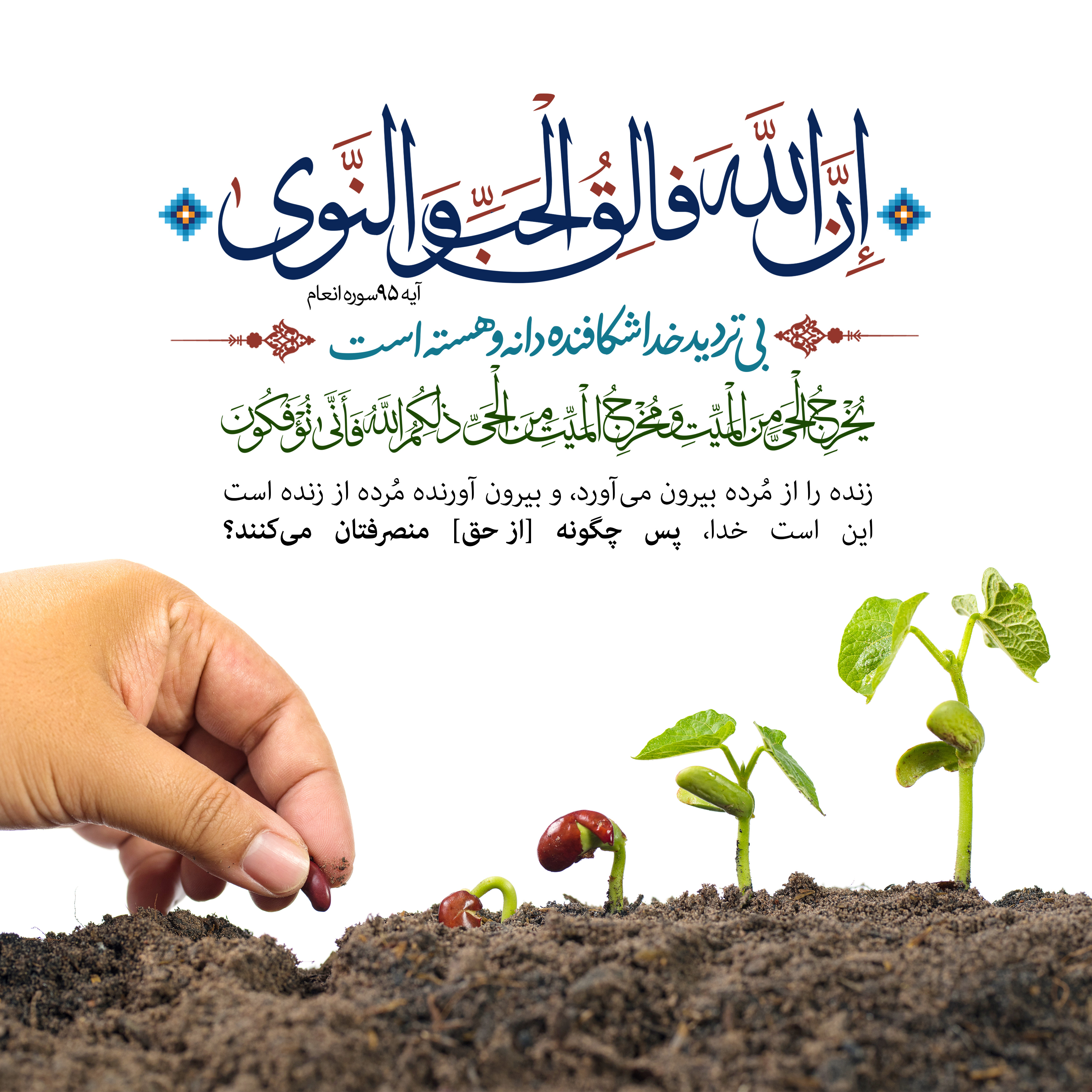 «وَعِندَهُ مَفَاتِحُ الْغَيْبِ لَا يَعْلَمُهَا إِلَّا هُوَ ۚ وَيَعْلَمُ مَا فِي الْبَرِّ وَالْبَحْرِ ۚ وَمَا تَسْقُطُ مِن وَرَقَةٍ إِلَّا يَعْلَمُهَا وَلَا حَبَّةٍ فِي ظُلُمَاتِ الْأَرْضِ وَلَا رَطْبٍ وَلَا يَابِسٍ إِلَّا فِي كِتَابٍ مُّبِينٍ ﴿۵۹﴾»