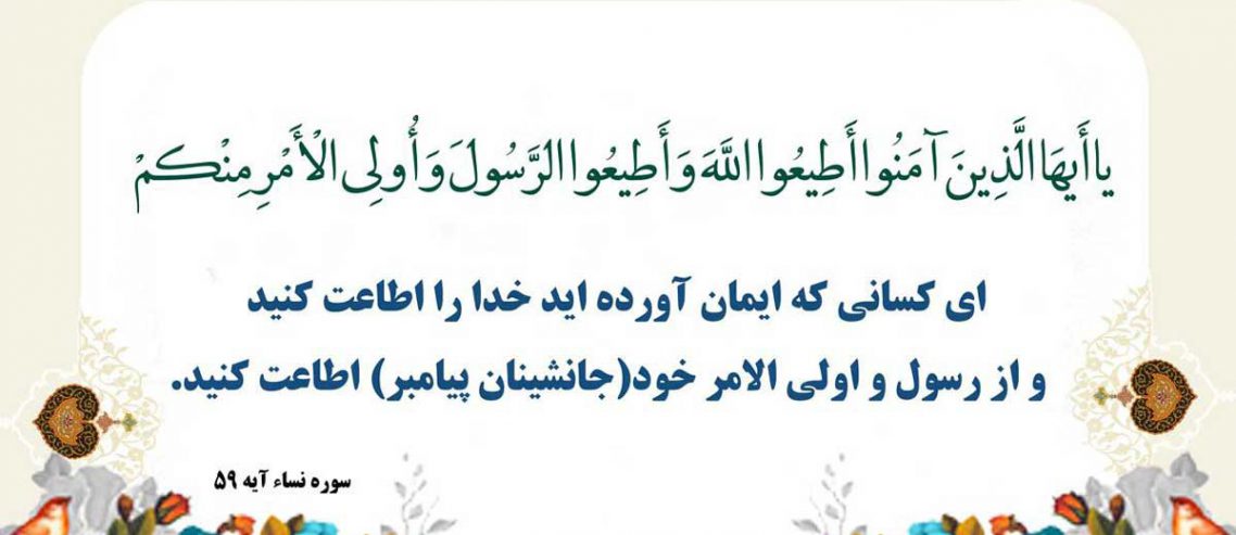 «يَا أَيُّهَا الَّذِينَ آمَنُوا أَطِيعُوا اللَّـهَ وَأَطِيعُوا الرَّسُولَ وَأُولِي الْأَمْرِ مِنكُمْ ۖ فَإِن تَنَازَعْتُمْ فِي شَيْءٍ فَرُدُّوهُ إِلَى اللَّـهِ وَالرَّسُولِ إِن كُنتُمْ تُؤْمِنُونَ بِاللَّـهِ وَالْيَوْمِ الْآخِرِ ۚ ذَٰلِكَ خَيْرٌ وَأَحْسَنُ تَأْوِيلًا﴿٥٩﴾»