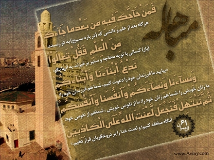«فَمَنْ حَاجَّكَ فِیهِ مِن بَعْدِ مَا جَاءَكَ مِنَ الْعِلْمِ فَقُلْ تَعَالَوْا نَدْعُ أَبْنَاءَنَا وَ أَبْنَاءَكُمْ وَنِسَاءَنَا وَنِسَاءَكُمْ وَأَنفُسَنَا وَأَنفُسَكُمْ ثُمَّ نَبْتَهِلْ فَنَجْعَللَّعْنَتَ اللَّـهِ عَلَی الْكَاذِبِینَ ﴿۶۱﴾»