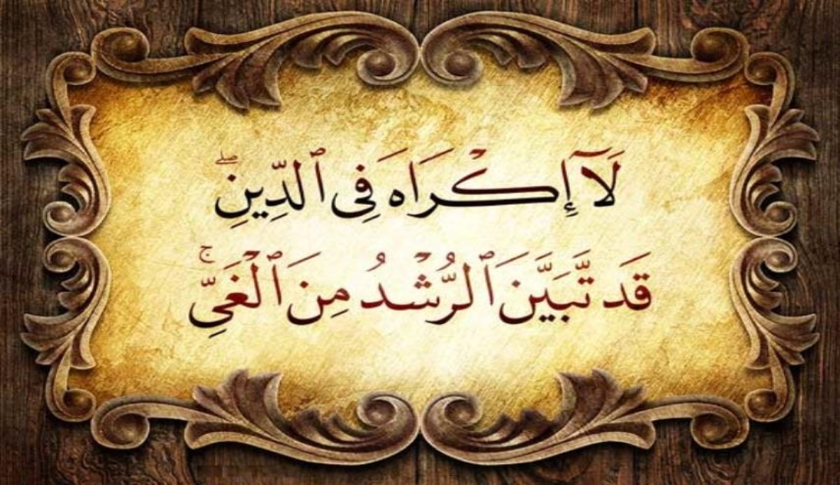 « لَا إِكْرَاهَ فِي الدِّينِ ۖ قَد تَّبَيَّنَ الرُّشْدُ مِنَ الْغَيِّ ۚ فَمَن يَكْفُرْ بِالطَّاغُوتِ وَيُؤْمِن بِاللَّـهِ فَقَدِ اسْتَمْسَكَ بِالْعُرْوَةِ الْوُثْقَىٰ لَا انفِصَامَ لَهَا ۗ وَاللَّـهُ سَمِيعٌ عَلِيمٌ﴿۲۵۶﴾»