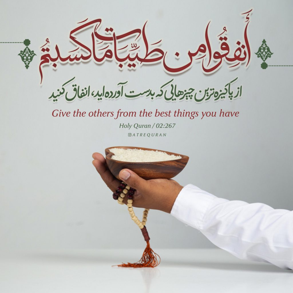 « الَّذینَ ینْفِقُونَ أَمْوالَهُمْ بِاللَّیلِ وَ النَّهارِ سِرًّا وَ عَلانِیةً فَلَهُمْ أَجْرُهُمْ عِنْدَ رَبِّهِمْ وَ لا خَوْفٌ عَلَیهِمْ وَ لا هُمْ یحْزَنُون﴿۲۷۴﴾»