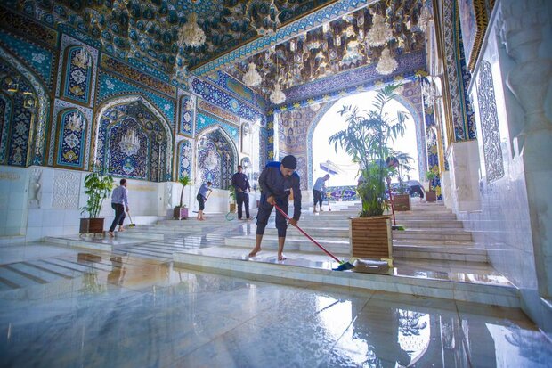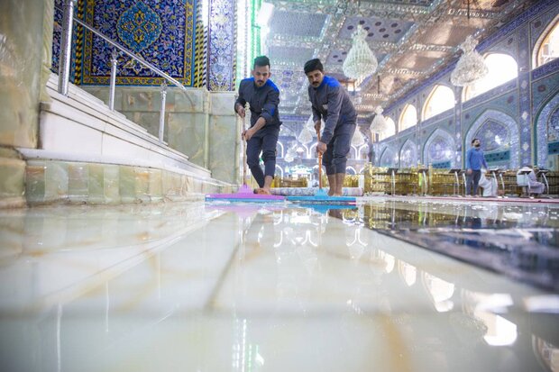 به دلیل هجوم گرد و غبار، حرم شستشو شد؛