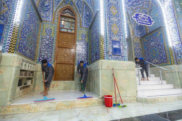 تصاویری از غبارروبی حرم مطهر امام حسین (ع)