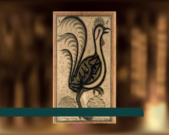 وبگردی- الکوثر: تابلو خط نقاشی به ابعاد ۶۸ در ۵۴سانتی متر محفوظ در گنجینه نسخ خطی کاخ گلستان است . این گونه تابلوها به * مرغ بسم الله* شهرت دارند که ترکیبی از خطوط ریز و درشت و نقاشی مرغ هست که به شکل تزیینی کارشده است.