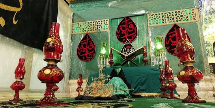 از داخل خرابه های شام، صدای یک کودک به گوش می رسید. تمام کسانی که در میان اسرا بودند، می دانستند که این صدای رقیه دختر کوچک امام حسین است. رقیه از خواب بیدار شده بود و سراغ پدرش را می گرفت. گویا خواب پدرش را دیده بود. در این حال یزید، دستور داد سر امام حسین علیه السلام را به رقیه نشان بدهند. وقتی حضرت رقیه علیهاالسلام سر بریده پدرش امام حسین علیه السلام را دید، با فریاد و ناله خودش را روی سر بریده پدرش انداخت و همان جا، از دنیا رفت. مرقد مطهر حضرت رقیه علیها السلام در سوریه نزدیک به قبر حضرت زینب علیها السلام است.