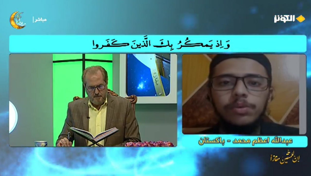 به گزارش پایگاه شبکه الکوثر، این قاری پاکستانی در یازدهمین شب مسابقات قرآنی «مفازا» به قید قرعه، آیات 30 تا 33 سوره مبارکه «انفال» را تلاوت کرد.