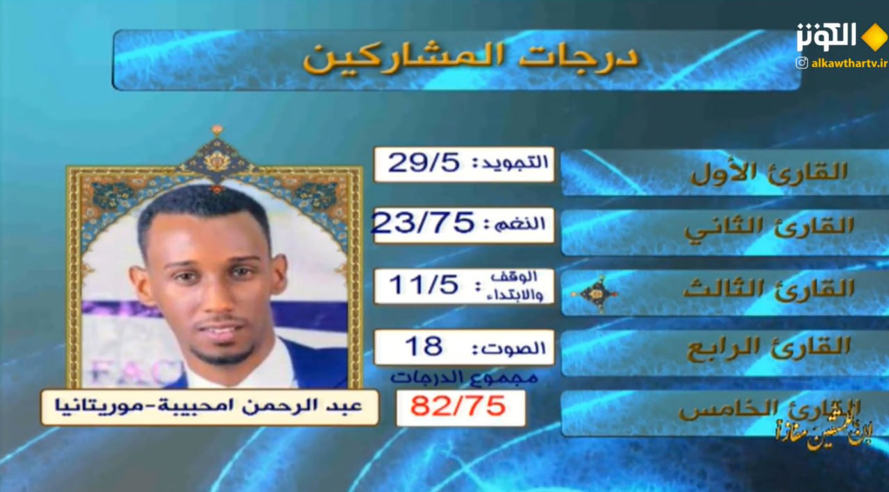 عبد الرحمن ام حبیبه از موریتانی 82.75 امتیاز