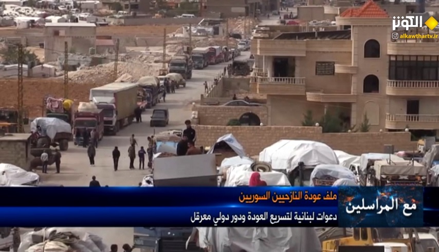 به گزارش پایگاه شبکه الکوثر، در گزارش برنامه «مع مراسلین» شبکه الکوثر در خصوص وضعیت آوارگان سوری و درخواستهای لبنانیها در این باره آمده است : برخی گروههای لبنانی از روابط بینالمللی خود برای جلوگیری از هر گونه راهحلی برای مسئله بازگشت آوارگان سوری به کشورشان استفاده کردند و از سوری های آواره به عنوان کارت فشار بر سوریه و لبنان نیز استفاده کردند.