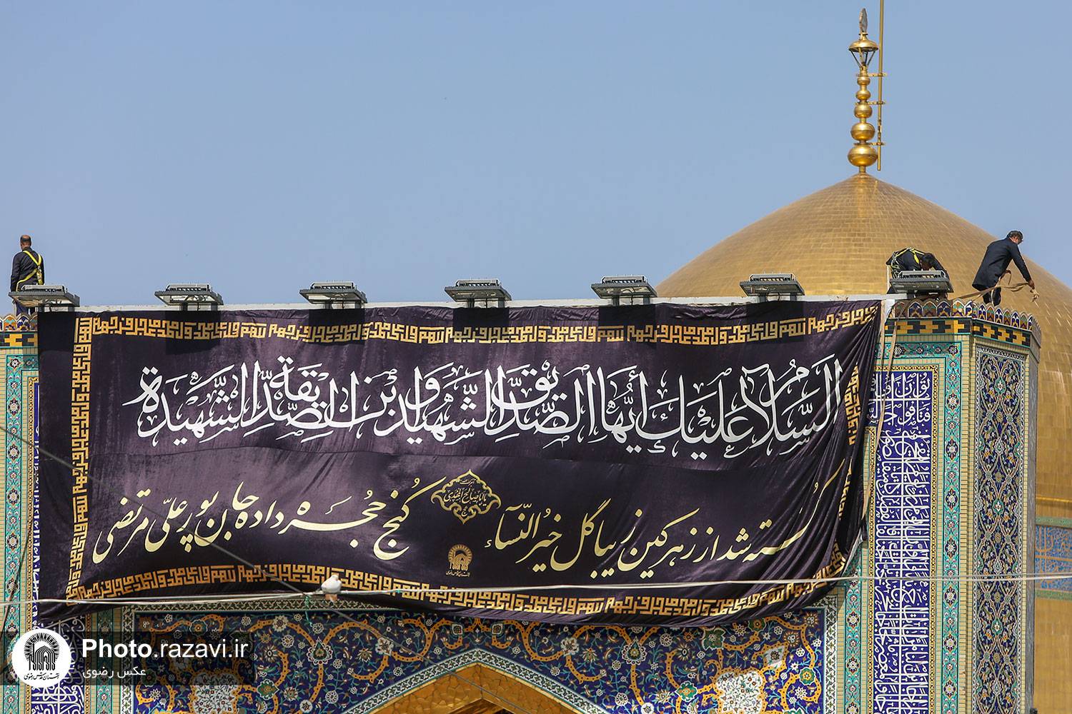 به گزارش پایگاه شبکه الکوثر، بارگاه ملکوتی امام هشتم(ع) از ابتدای ماه محرم سیاهپوش و سوگوار است، در این میان به مناسبت فرارسیدن ایام پایانی صفر به سنت هر ساله، کتیبههای بزرگ محرمی با کتیبههای مناسبتی این ایام تعویض شد.