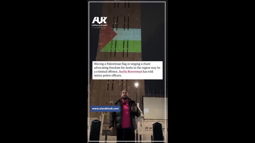 به گزارش پایگاه شبکه الکوثر، «جبران باهو» هنرمند انگلیسی با این اقدام در پی به چالش کشیدن تصمیم «سوئلا براورمن» وزیر کشور انگلیس است که پیش از این خواستار اتخاذ تدابیری شدیدتر علیه تظاهرات همبستگی با فلسطین شده بود. براورمن همچنین اعلام کرده که هرگونه اهتزاز پرچم فلسطین با انگیره حمایت از عملیات نیروهای مقاومت، جرم محسوب میشود.