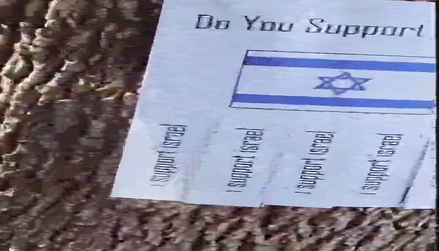 به گزارش پایگاه شبکه الکوثر، در این تبلیغات خلاقانه، فرد حامی پس از جدا کردن برگهای که روی آن عبارت « من حامی اسرائیل هستم» نوشته شده، تصویر دیگری از یک کودک فلسطینی مشاهده میکند و در حالی که دستانش به رنگ قرمز(نمادخون) آغشته شده با عبارت «شما یک نوزاد را در غزه کُشتید!» روبرو میشود.