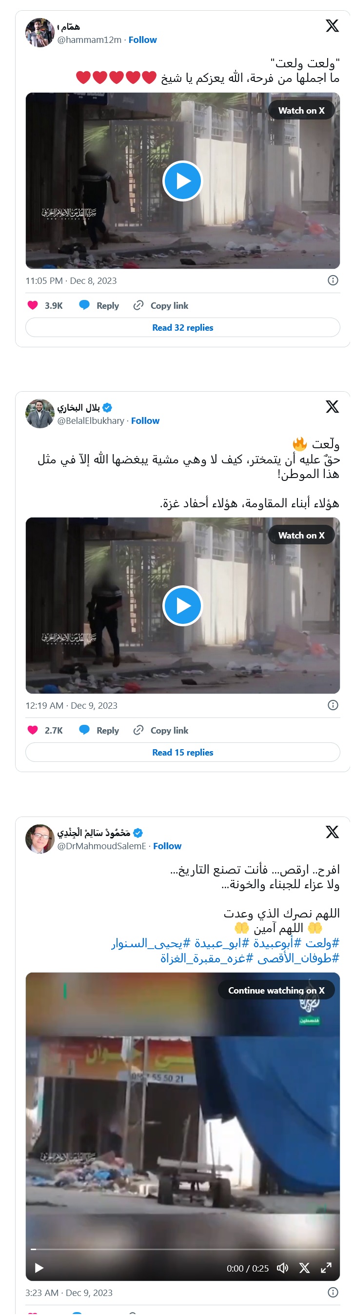 بلال البخاری نیز نوشت: حق دارد که به خود ببالد، اینان فرزندان مقاومت و غزه هستند.