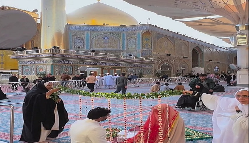 در این بین، زوج پاکستانی با حضور در حرم مولا، مراسم عقد خود را در این مکان مقدس برگزار کردند. محمد حیدر که برای نخستینبار به زیارت عتبات مشرف شده است، میگوید که «میخواستم زندگی مشترک را با عنابت با مولا و کنار امیرالمؤمنین علیهالسلام آغاز کنم.»