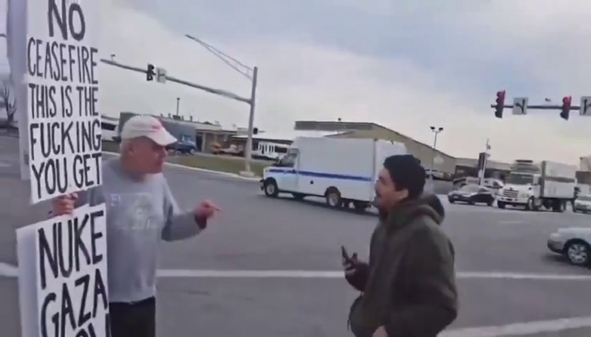 به گزارش پایگاه شبکه الکوثر، یک مرد حامی رژیم صهیونیستی در آمریکا، پلاکاردی در دست دارد و روی آن نوشته شده است: «نه به توقف جنگ؛ همین الان غزه را با بمب اتم بزنید».