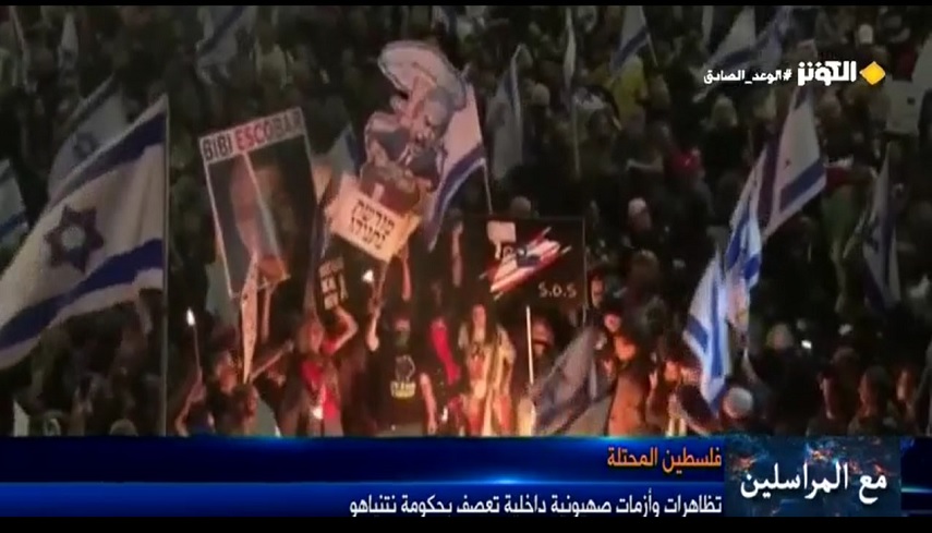 ویژه - الکوثر: گزارش برنامه «مع المراسلین» شبکه الکوثر حاکیست، در حالی که اختلافات داخلی در دولت اشغالگر صهیونیستی بر سر تواق با جنبش حماس همچنان ادامه دارد، بعد از پخش فیلمی از اسیران صهیونیست که تبادل فوری اسرا را خواستار شدند، خیابان های فلسطین اشغالی مملو از معترضان شد.