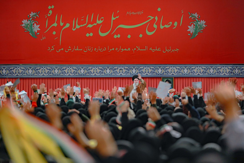 حضرت آیتالله خامنهای پس از برشمردن بعضی از اصول مهم منشور اسلام درباره زن، رشد شگفتانگیز زنان مؤمن، دانا و فعال در عرصههای مختلف پس از پیروزی انقلاب را بر پایه این نگاه متعالی دانستند و گفتند: نقش زنان در دوره مبارزات و پیروزی انقلاب تعیینکننده بود و در حالی که برخی افراد، مخالف حضور زنان در راهپیماییها بودند، امام بزرگوار با آن نگاه به شدت مخالفت کردند.