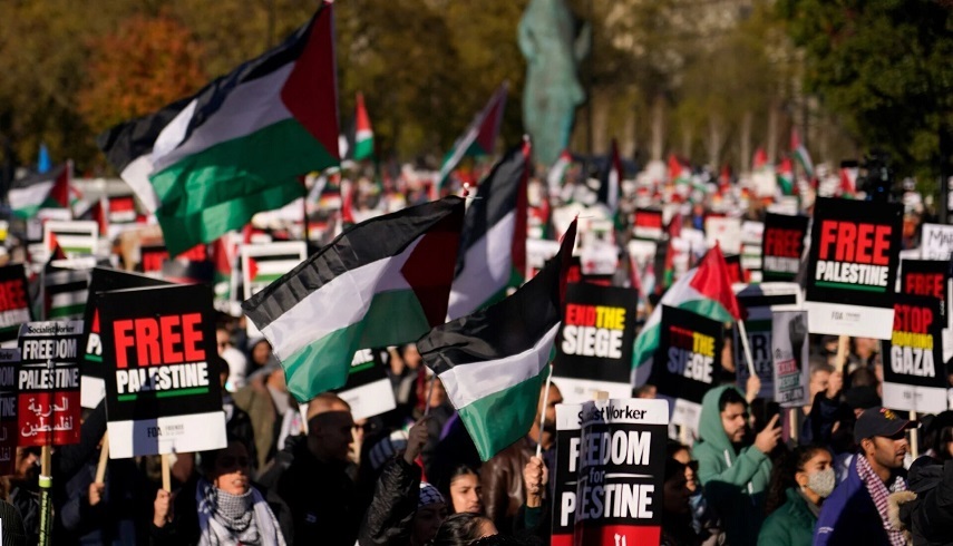 مردم برایتون در انگلیس نیز پرچم های فلسطین را از پنجره خانه های خود آویزان کردند تا با مردم فلسطین ابراز مبستگی کنند.