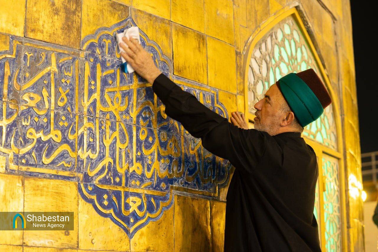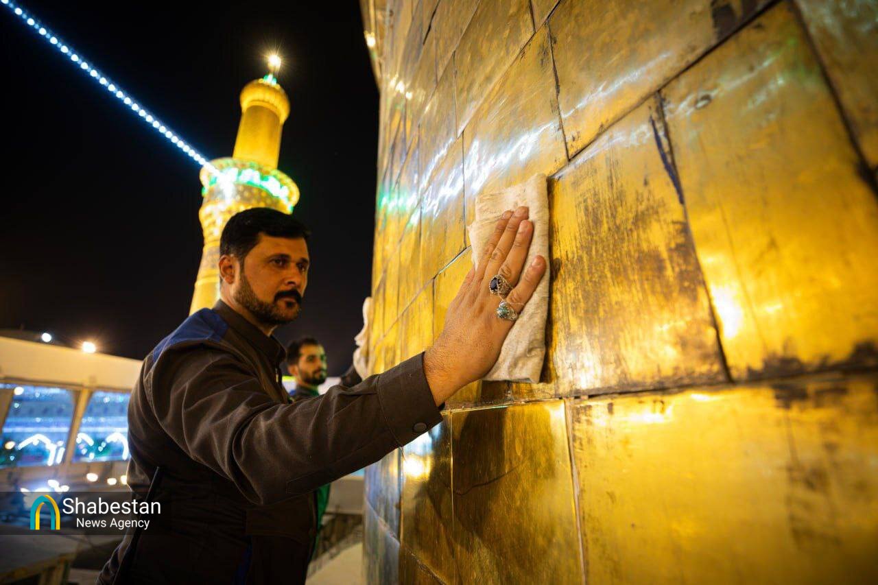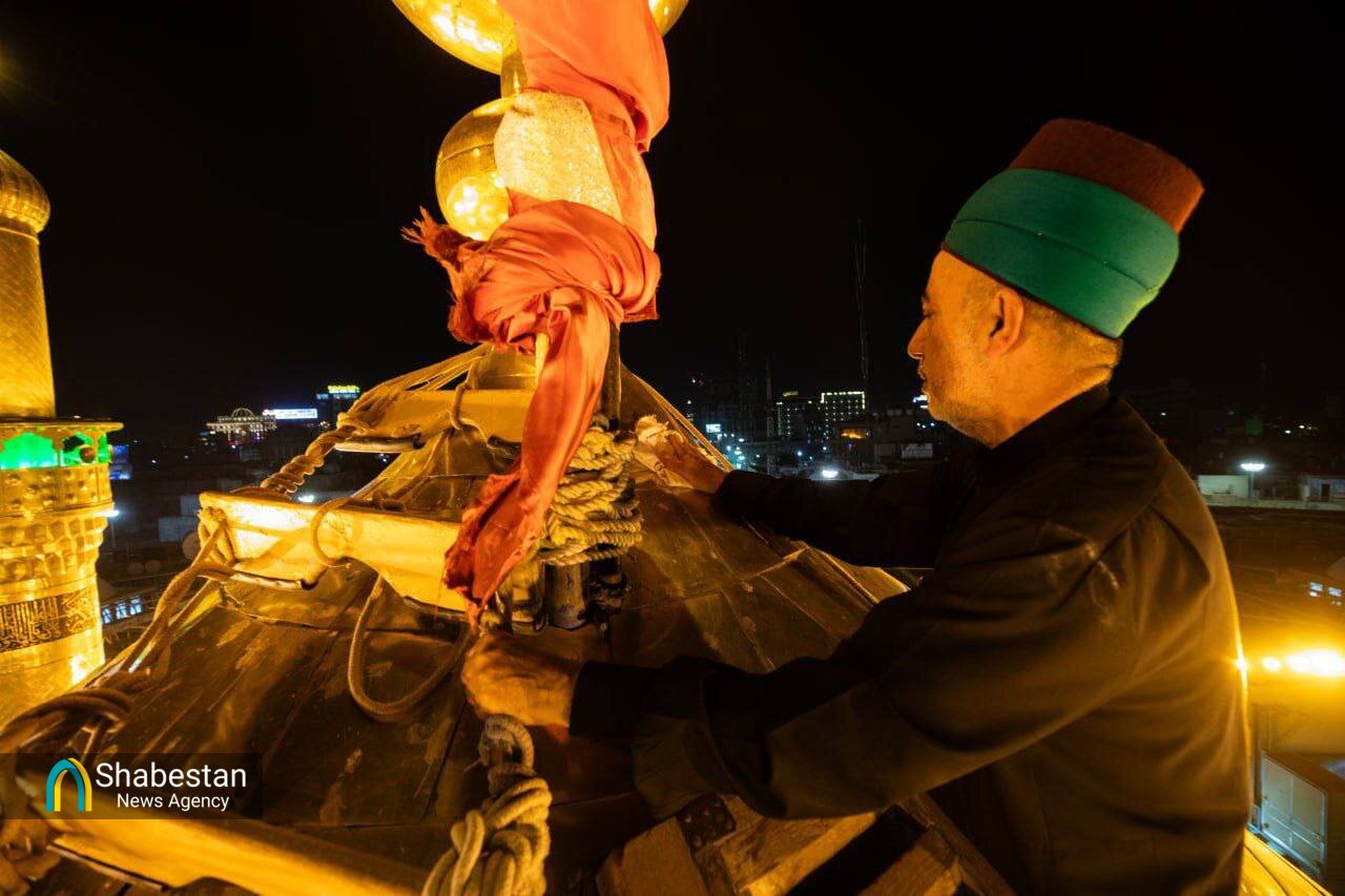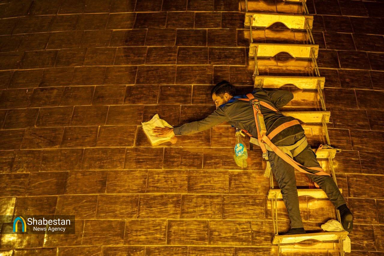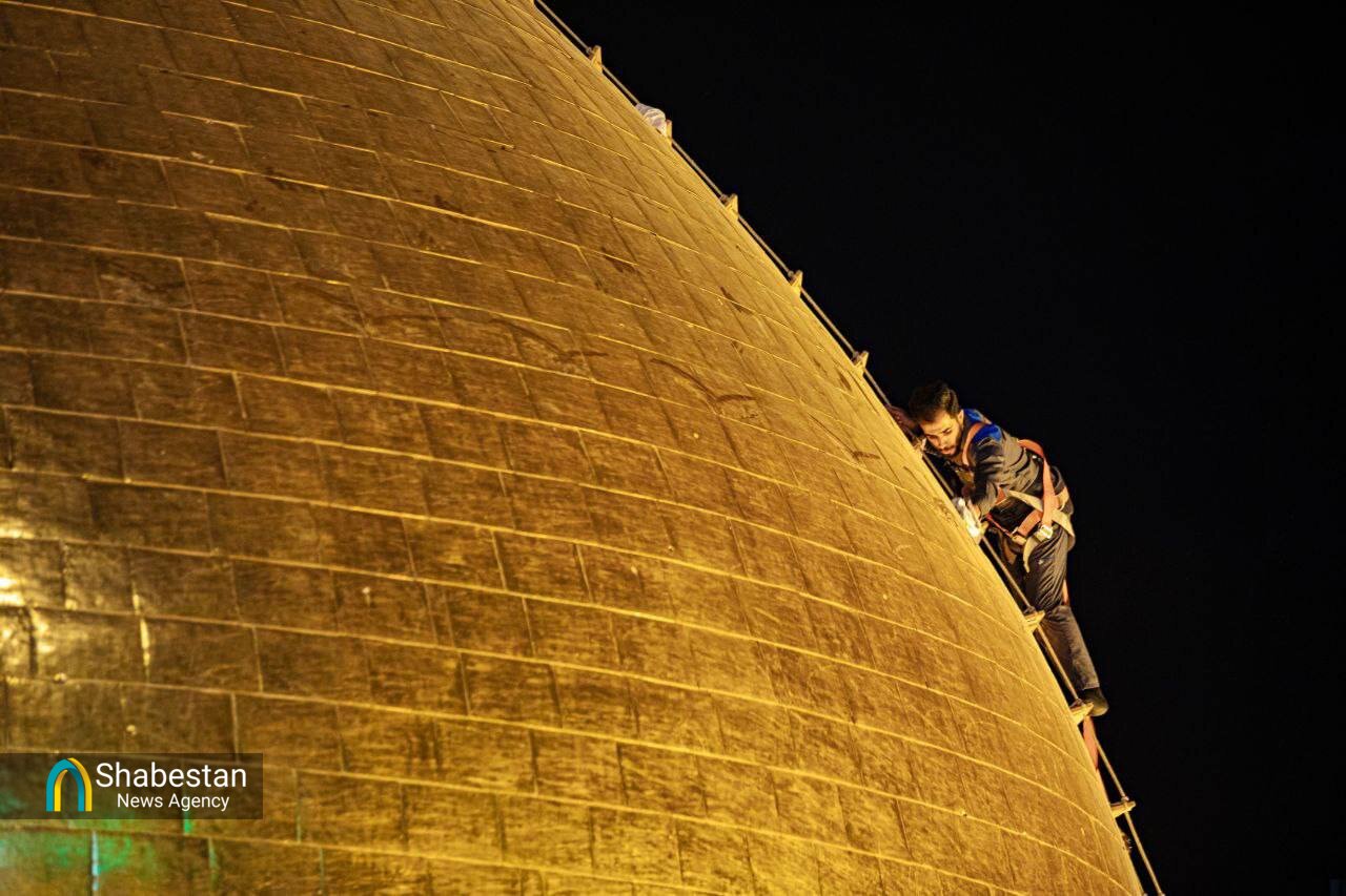 در راستای آماده سازی برای محرم الحرام و برافراشتن پرچم عزای حسینی، گنبد حرم امام حسین (ع)شستشو داده شد.