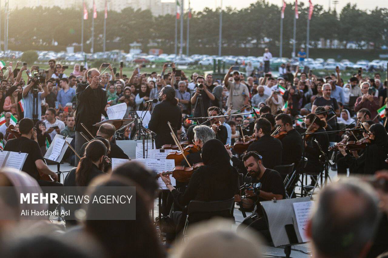 ارکستر سمفونیک تهران به رهبری نصیر حیدریان و با همراهی محمدرضا سفی در نقش خواننده، عصر چهارشنبه ۴ تیر ماه ۱۴۰۴، در میدان آزادی برنامهای ویژه و فراگیری را اجرا کرد.
