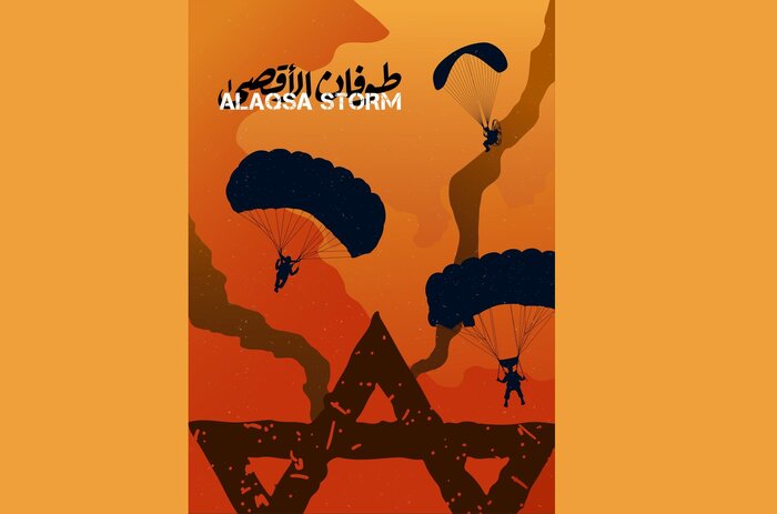 پوستر «طوفان الاقصی» از جمله این آثار است که با طراحی گرافیک مهدی توحیدی منتشر شده است.