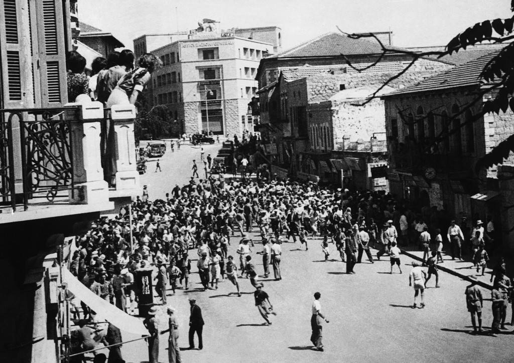 پس از کشتار دیر یاسین، طرح "دال" با تخریب دهکده های فلسطینی در مسیر جاده تل آویو به قدس ادامه می یابد. جلیلیه و طبریه به تصرف هاگانا در می آید و ساکنان فلسطینی آنها آواره می شوند. قوای انگلیس با تخلیه حیفا امکان حمله هاگانا را به شهر آماده می کند. فلسطینی های حیفا زیر باران خمپاره می گریزند. ایرگون همین اقدام را در یافا انجام می دهد تا ماه آوریل بخش غربی قدس به تصرف هاگانا در می آید و سکنه فلسطینی آن آواره می شوند. تا اول ماه مه نزدیک به دویست هزار نفر فلسطینی آواره شده اند. در 14 ماه مه تشکیل اسرائیل اعلام می شود و آمریکا فورا آن را به رسمیت می شناسد. روز بعد پایان حاکمیت انگلیس است. در همین حال هاگانا مشغول تسخیر قدس شرقی ( بخش قدیمی شهر) است. نیروهای لبنانی از مرز می گذرند و چند آبادی را به تصرف خود در می آورند. نیروهای اردنی هم از مرز گذشته و قدس شرقی را تصرف می کنند. عراقی ها نابلس جنین و طولکرم را می گیرند. مصری ها در ساحل مدیترانه پیشروی می کنند و تا بیت اللحم رفته و به سایر نیروهای عربی می پیوندند. نیروهای سوری نیز چند آبادی یهودی نشین را تصرف می کنند. در 22 ماه مه سازمان ملل درخواست آتش بس می کند و در 11 ژوئن آتش بس برقرار می شود.کنت برنادوت نماینده شورای امنیت در فلسطین پیشنهادهای جدیدی می دهد که هر دو طرف رد می کنند. در 7 ژوئیه اسرائیل آتش بس را می شکند اما در چند روز جنگ موفقیتی به دست نمی اورد. آتش بس بعدی بازهم در 18 ژوئیه شکسته می شود. طرح جدید برنادوت برای تغییر نقشه دو کشور و بازگشت آواره ها باز هم رد می شود. در 17 سپتامبرگروه اشترن نماینده سازمان ملل را به قتل می رساند. در اکتبر و نوامبر اسرائیلی ها در جنوب و شمال پیشروی می کنند و حتی جنوب لبنان را نیز تصرف می کنند و ساکنین لبنانی را تا 15 کیلومتری مرز از خانه های خود می رانند.