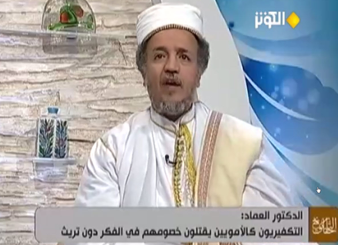 دکتر «عصام العماد» در گفتوگو با برنامه «حقائق التاریخ» (حقایق تاریخ) شبکه تلویزیونی «الکوثر» درباره خشونت تکفیریها علیه مخالفانشان و اینکه خاستگاه فرهنگ خشونت و تکفیر آنها کجاست، گفت: امویها مخالفانشان را نه به علت مخالفت در عقیده و دین و مذهب بلکه به علت نفس مخالفت در هر چیزی، دشمن قلمداد میکردند و به قتل میرساندند. تکفیریها نیز امروز چنین میکنند.