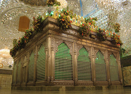 ضريح مزبور در وسط روضه اي قرار دارد كه از چهار قسمت، رواق ها آن را احاطه كرده اند. اطراف اين روضه به طور كلي تا سقف آينه كاري شده و كتيبه هايي با خط ثلث روي كاشي هاي گرداگرد روضه نوشته شده و تاريخ 929 ق روي آن ديده مي شود. اين كتيبه ها از آثار عصر صفوي است. در داخل روضه قنديل بزرگي به سقف آويزان بوده است كه در آن نهايت ظرافت و هنر به كار رفته است. اين قنديل از تزيينات نفيس عصر معزالدوله ديلمي است و از طلاي ناب ساخته شده است. روي كتيبه هاي اطراف روضه مطهر، نام هاي شاه اسماعيل و فتحعلي شاه ديده مي شود.