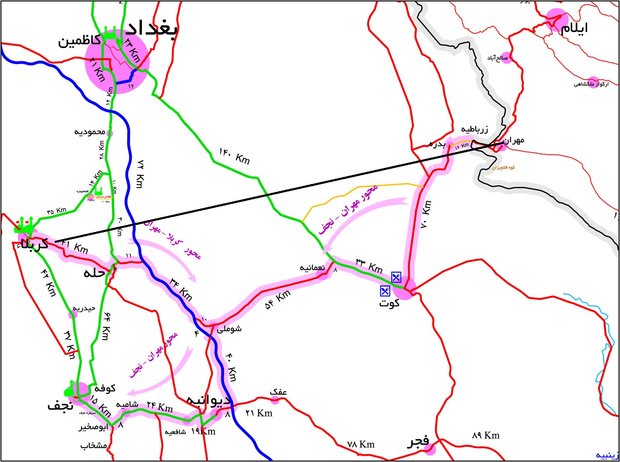 فاصله بغداد تا کربلا ۱۰۲ کیلومتر