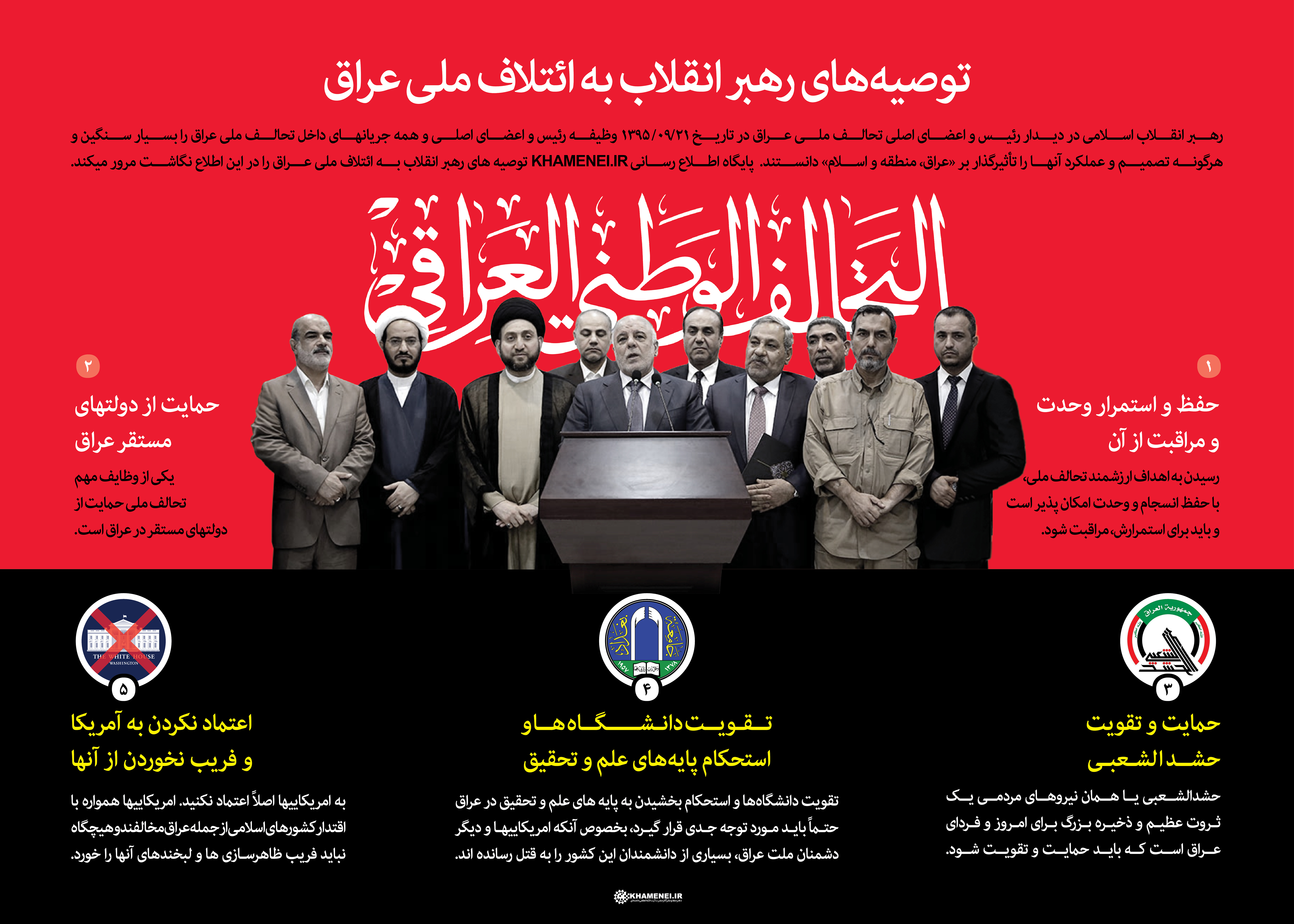 اينفوگرافي : توصيههاي رهبر انقلاب به ائتلاف ملي عراق