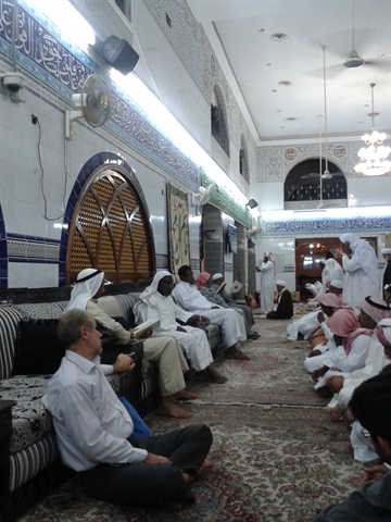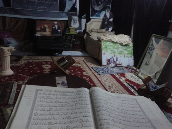 داخل مسجد اتاق کوچکی را اختصاص دادهاند به عکسها و وسائل شخصی شیخ عمری؛ سجاده ها و لباس و عبا و عمامه و … قرآن بزرگی هم گوشه اتاق گذاشتهاند تا هر زائری صفحهای بخواند و ثوابش را به روح شیخ عمری هدیه کند