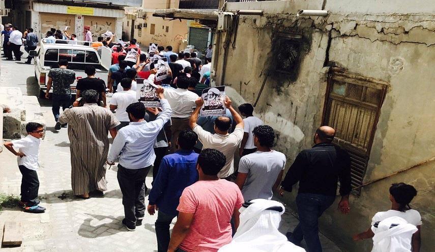 يتظاهر البحرينيون في بني جمرة تضامنا مع الشيخ عيسى قاسم ورفضا للحكام الصادرة بحقه من قبل قضاء النظام.