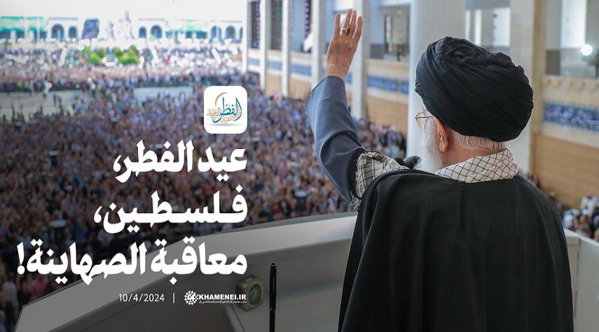 نشر موقع الامام الخامنئي الإعلامي مقطعاً مصوّراً يتضمن مشاهد من إقامة صلاة عيد الفطر في طهران بإمامة الإمام الخامنئي بتاريخ 10/4/2024 ومقتطفات من كلام سماحته حول مأساة أهالي غزة ومعاقبة الكيان الصهيوني بسبب الاعتداء على القنصلية الإيرانية في دمشق.