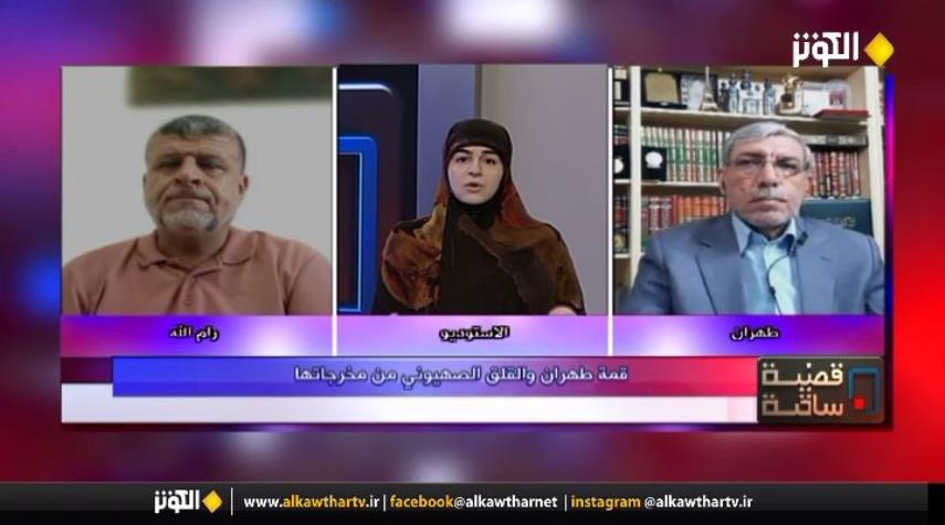 خاص الكوثر: هذه الحلقة من برنامج قضية ساخنة، تحدثنا حول" قمة طهران والقلق الصحهيوني من مخرجاتها " ، وذلك مع الدكتور " رعد هادي جبارة " باحث سياسي واكاديمي من طهران، الاستاذ " جمعة التايه " مختص بالشأن الاسرائيلي.