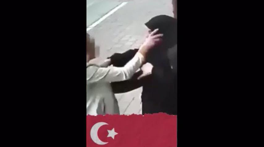 بالفيديو.. تركية تهاجم سيدتين وتنزع حجاب إحداهن!
