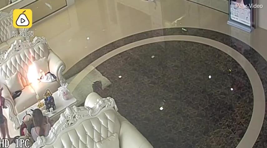 مشاهد مثيرة - الكوثر: سجلت كاميرات المراقبة المثبتة في أحد صالونات التجميل، نجاة امرأة صينية ورضيعها بأعجوبة من انفجار هاتفها الجوال الذي كان بجوارها أثناء جلوسها على الأريكة.